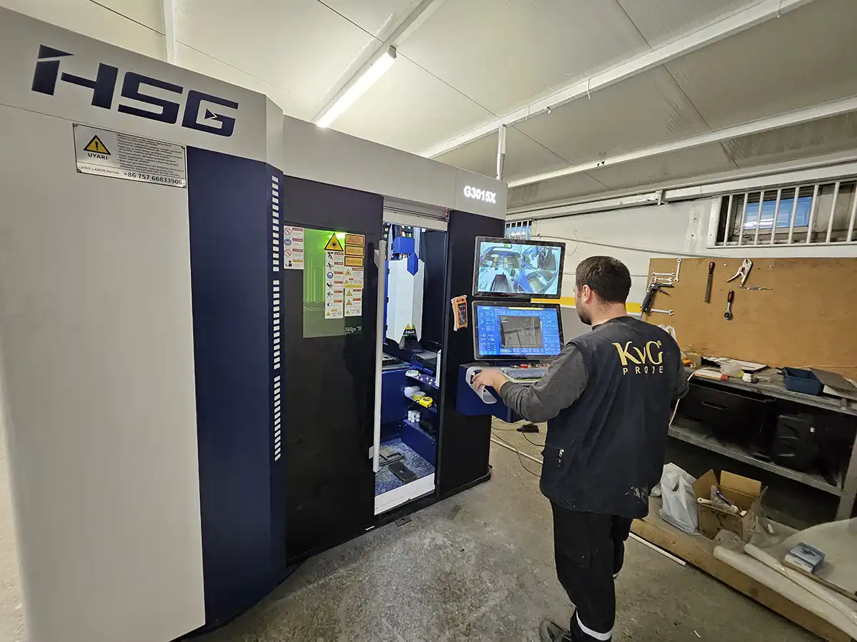 KvG Metal`in lazer bölümünde bulunan son teknoloji 6 kW CNC Fiber Lazer kesim tezgahı, 0,5 mm ile 30 mm arasındaki kalınlıklarda ve 1500 mm ile 3000mm uzunluğa kadar tüm metal kesim ihtiyaçlarınız için maksimum kesim kalitesi sunuyor. Profesyonel ekibimiz, 7/24 hizmet vererek her türlü projenize hızlı ve güvenilir çözümler sunmaya hazır.
